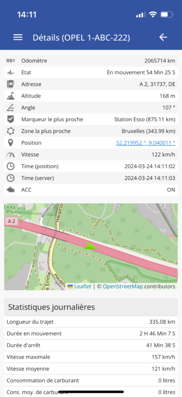 Localisez facilement vos véhicules en temps réél sur la carte via votre ordinateur/tablette/smartphone, avec les détails sur l’état des véhicules, kilomètrage, vitesse, etc…